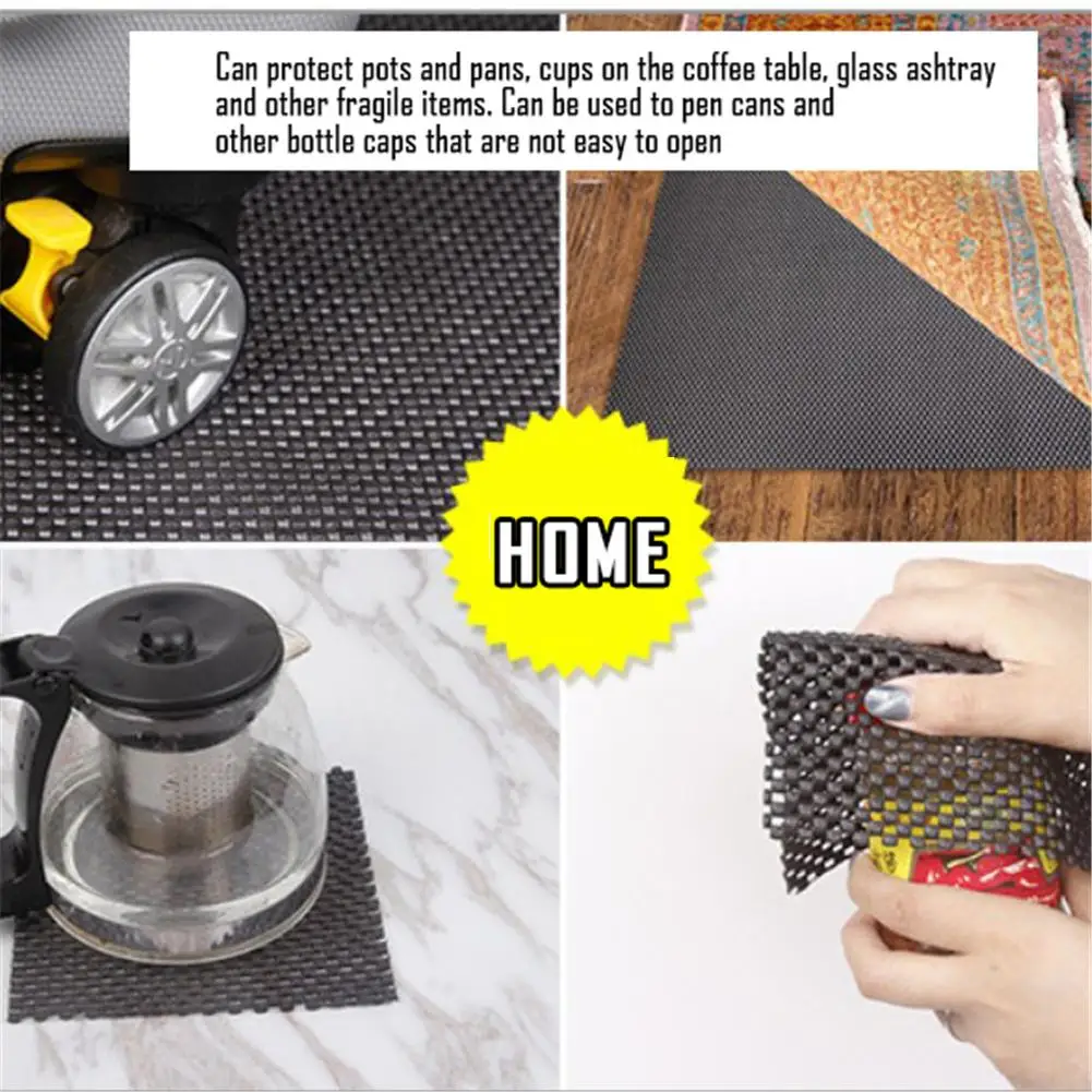 Use introduction: 1. The trunk of the car-Can be placed in the back of the trunk to prevent the luggage from slipping. 2. The cab, seat - Can be DIY cut into favorite shape, easy to hold small items (such as mobile phones, perfumes, etc.), prevent falling. 3. Home floor - non-slip, and insulation; if there is a carpet at home, it can be placed under the carpet. 4. Coffee table, kitchen, vases - Can protect pots and pans, cups on the coffee table, glass ashtray and other fragile items. 5. Can be used to pen cans and other bottle caps that are not easy to open - cover a small piece of anti-slip mat to open the bottle cap easily. 6. Yoga mats - enough size, soft, sitting on the top is also very comfortable.