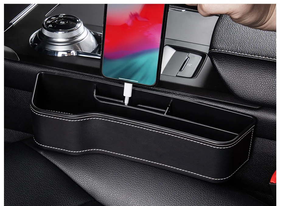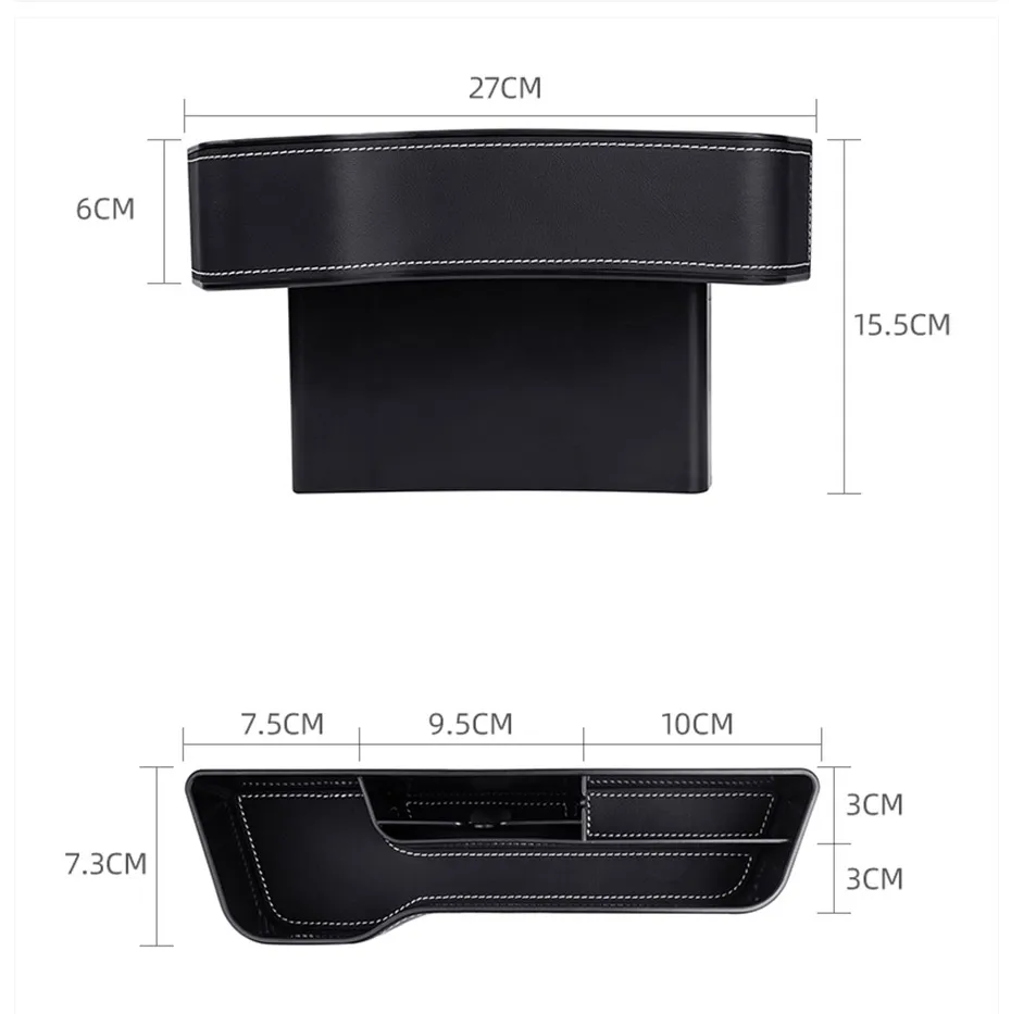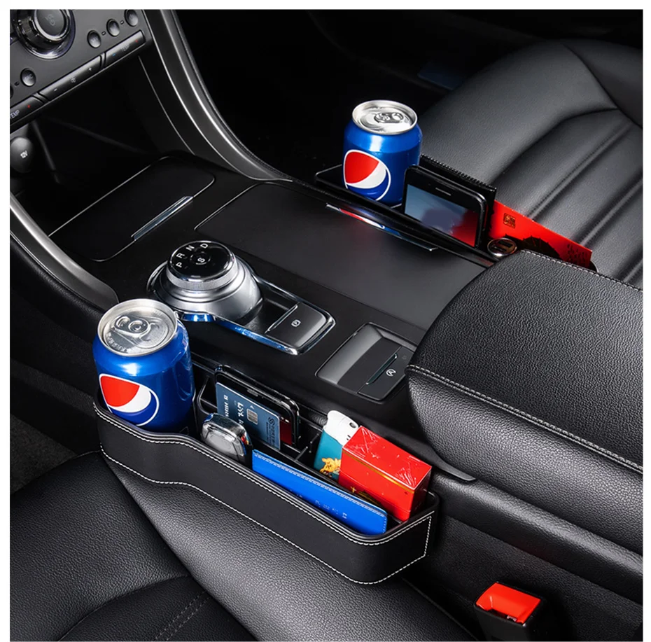 Feature:Color: BlackMaterial: PU Leather, Anti FurFit for: Driver SIde, Passenger SideSpecial: With cup holder, USB line clipSpecification:【Fill Gaps & Enlarge Space】The car front seat organizer can fill the gaps between the car seat and centre console and stop dropping small items, avoid dander caused by driving distraction. It can provide extra storage for your stuffs such as smartphone, wallet, cigarette, keys, hand cream, coins, gloves, credit card, documents, pens maps, sunglasses, etc. Easy to get it when driving. 【Warm Tips】Please carefully measured the distance between your seat and the console before purchase. This car seat gap organizer not suitable for cups larger than cola jars. Not fit for car with lower central console than the seat. Not fit for car seat gaps with width at larger than 0.8inches.For more detail please check the size image carefully. 【High Quality Material】The car seat catcher is made with premium PU leather and plastic material, super durable with long service life and never slip down between the seats. The perfect stitching and beautiful appearance make your car look more elegant. 【Easy to Install & Clean】Install in Few Seconds .Just insert between the seat and console. With upgraded water resistant, it can also clean with water when it's dirty. Car seat gap organizer keep your car more clean and organized. 【Safe Use】It will not affect the use of seat belts, nor will it affect you to pull the handbrake, clean up the small objects in the car and drive safely, and enjoy a pleasant driving